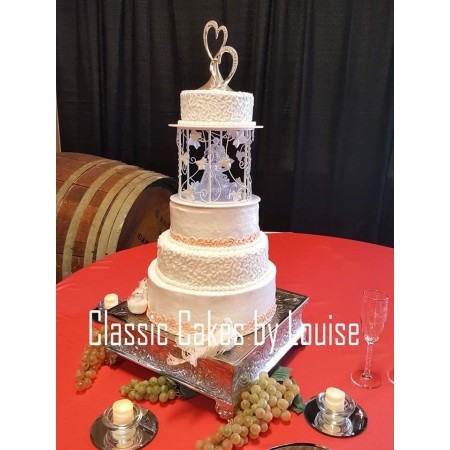 Make your wedding day extra special with a customized wedding cake by Louise! Serving NC & SC, Louise has 35+ years of cake making and decorating experience. Each cake is a work of art, moist, made from scratch, AND affordable! She personally delivers & sets up your cake to be "picture perfect" too! Louise is quite resourceful and can also help you by providing an affordable, customized wedding planner package (including photography) that can help you save time and money. Southeast's finest!
